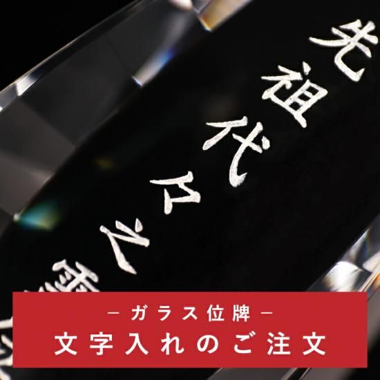 ガラス・クリスタル位牌の文字彫りの商品ページとなります。ガラス・クリスタル・位牌とセットでご注文下さい
